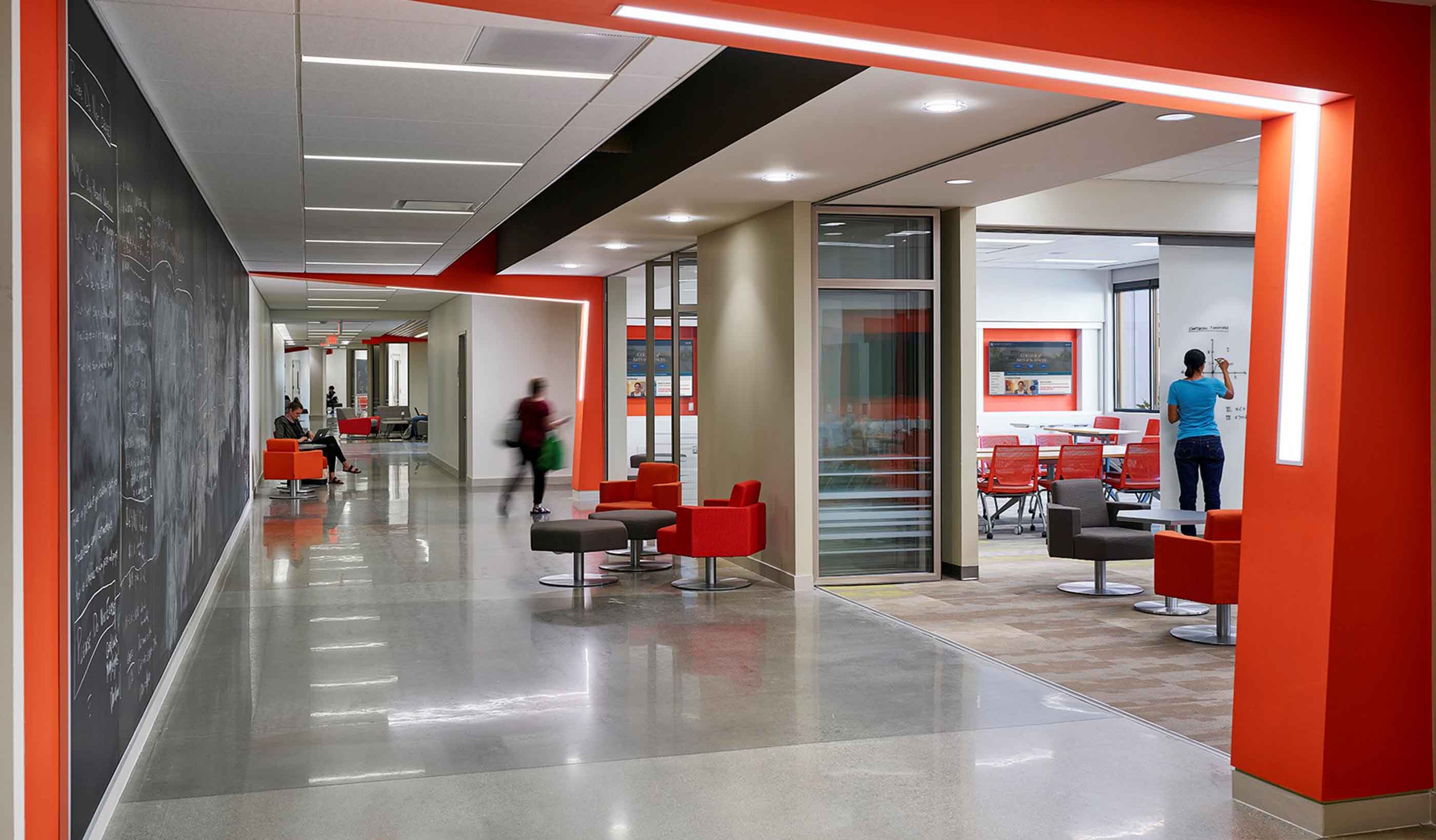 We design campus experiences that allow all learners to grow and achieve their greatest potential. Inside flexible classroom spaces, students are free to open their minds and embrace collaboration. Faculty have the tools, technology, and space to connect with students and do what they do best. Outside of the classroom, every square foot is used to create nooks and common spaces where ideas can flow.