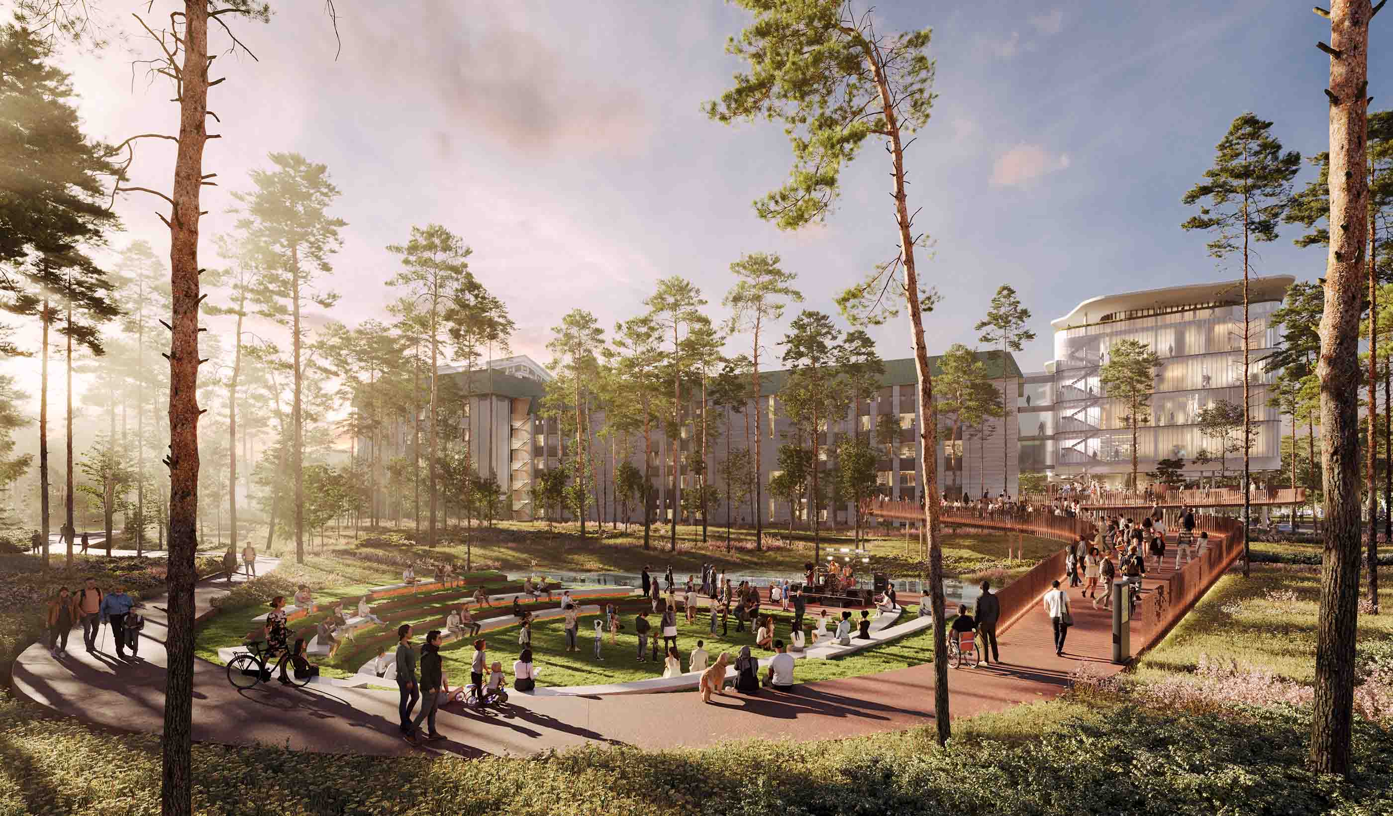 “The jury unanimously agreed that this submission presented a strong engagement with the city of Irpin and the forest nearby. We liked the openness of the plan and the way the proposed buildings draw people into the site while also offering transparency of common areas,” said Wendy Hillis, architectural competition jury chair.